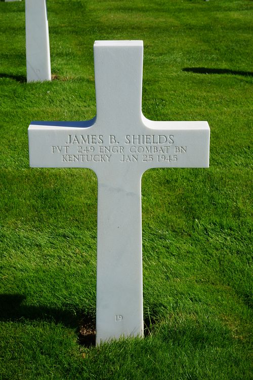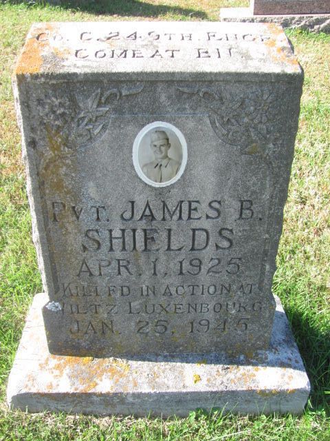 Pvt James B. Shields enlisted in Evansville, Indiana on 22 June 1943.He was killed by a land mine.