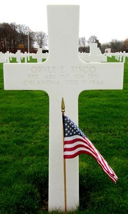 Pfc Orvle E. Sisco was a carpenter before he enlisted in Oklahoma City on 25 February 1943.Source of information: Leo Minne, Raf Dyckmans, www.abmc.gov, www.wwiimemorial.com, www.ancestry.com – 1920/1930/1940 Census / U.S Draft Cards Young Men / Skelton Butcher Family Tree