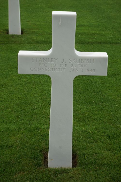 Pfc Stanley J. Skubish attended college for one year before he enlisted in Allentown, Pennsylvania on 28 May 1943.Source of information: Peter Schouteten, www.abmc.gov, www.wwiimemorial.com, www.archives.gov – WWII Enlistment Record, www.ancestry.com - Headstone and Interment Record / U.S. WWII Draft Cards Young Men, www.findagrave.com – Joel Frampton Gilfert, www.fold3.com – 26th Infantry Division