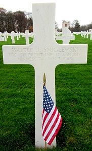 Pfc Walter J. Smiglewski employed at the Great Northern Railway Company.He was first buried at Temporary American Military Cemetery Grand Failly, France.