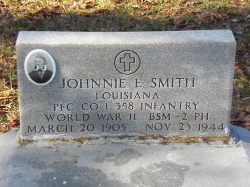 Pfc Johnnie E. Smith Jr. was a teamster before he enlisted at Fort Lauderdale, Florida on 14 March 1942.Initially listed as missing in action, non-recoverable or unidentifiable, Pfc Smith's remains were later recovered and identified. His remains were returned to Louisiana for interment at a private cemetery.