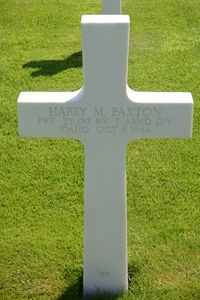 Pvt Harry M. Paxton worked on a farm before he enlisted on 13 March 1944 at Fort Leavenworth, Kansas.Source of information: Peter Schouteten, Terry Hirsch, www.wwiimemorial.com, www.archives.gov, http://www.7tharmddiv.org/index.htm, www.ancestry.com - 1930 Census / United States World War II Army Enlistment Records, 1938-1946