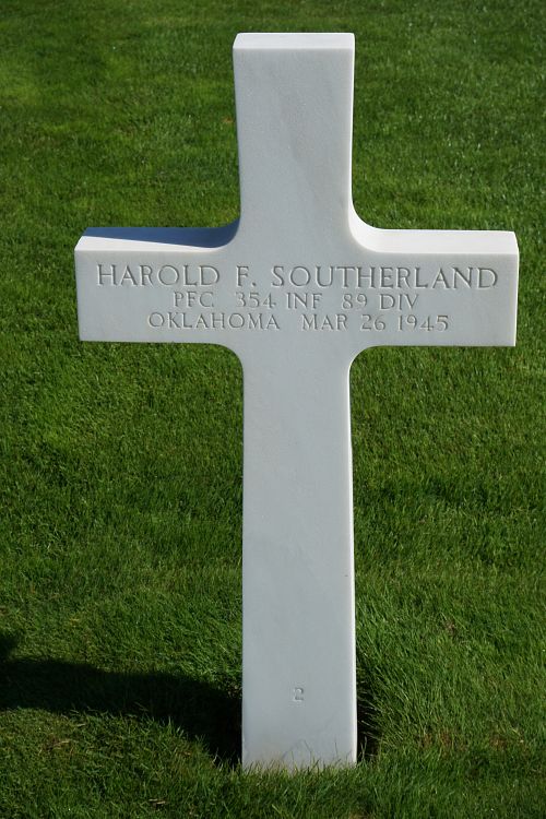 Pfc Harold F. Southerland enlisted at Fort Sill, Oklahoma on 24 February 1944.Source of information: André Koch, www.abmc.gov, www.wwiimemorial.com, www.ancestry.com - 1930 Census / WWII Draft Cards Young Men, 1940-1947 / Headstone and Interment Record / Texas, Birth Certificates, 1903-1932, http://www.89infdivww2.org