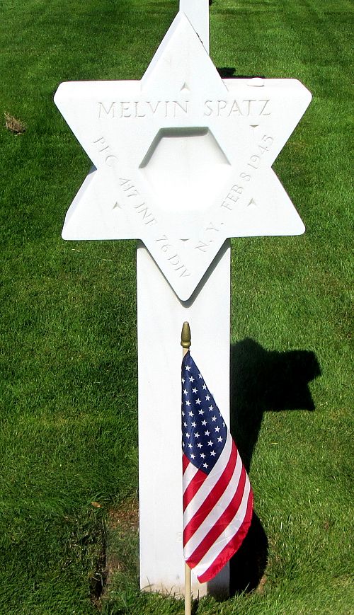 Pfc Melvin Spatz emigrated in 1923 to the United States, and was married to Sylvia Lillian Silberman on 24 August 1940 in New York City. He was naturalised as an American citizen on 20 August 1942 in New York City.He enlisted in New York City, New York on 10 December 1943.