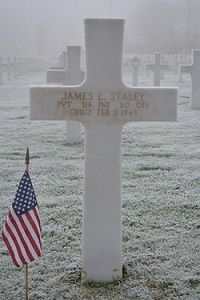 Pvt James E. Staley attended high school for two years and was a welder employed by Whitehead & Kales Company in River Rouge, Michigan, before he enlisted at Fort Hayes, Ohio on 1 September 1944.He was married to Juanita Hardy on 5 July 1941.