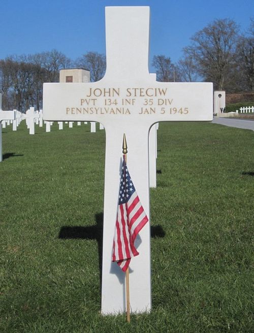 Pvt John Steciw was a mail carrier at the Cuneo Eastern Press, printing company, before he enlisted in New Cumberland, Pennsylvania on 31 March 1944.He was killed by artillery shell fragments to his head.