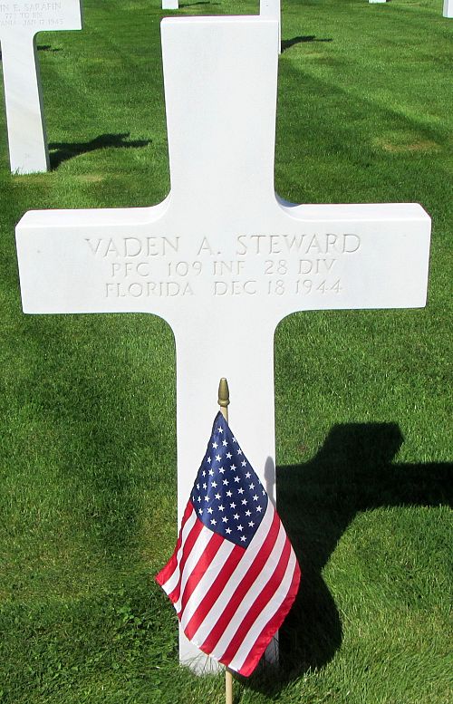 Pfc Vaden A. Steward attended Walnut Hill School before he enlisted in Camp Blanding, Florida on 5 January 1943.