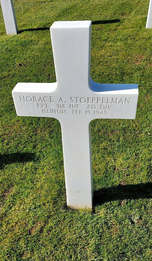Pvt Horace A. Stoeppelman joined the Regular Army in Ettrick, Virginia on 28 April 1939.Source of information: Leo Minne, www.abmc.gov, www.wwiimemorial.com, www.ancestry.com – 1930/1940 Census / U.S. Headstone and Interment Record / U.S. WWII Hospital Admission Card File / U.S. Draft Cards Young Men, www.80thdivision.com