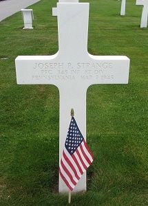 Pfc Joseph P. Strange attended high school for three years and worked at the J.P. Ward Foundry before he enlisted in Wilkes Barre, Pennsylvania on 25 August 1944.Source of information: Peter Schouteten, www.abmc.gov, www.wwiimemorial.com, www.archives.gov - WWII Enlistment Record, www.ancestry.com - Headstone and Interment Record / Pennsylvania Veteran Compensation Application Files WWII / U.S. WWII Draft Cards Young Men / 1940 Census, http://87thinfantrydivision.com, www.findagrave.com