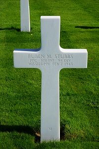 Pfc Ruben M. Stubbs attended high school for two years and worked on a farm before he enlisted in Camp Shelby, Mississippi on 6 May 1942.Source of information: Peter Schouteten, www.abmc.gov, www.wwiimemorial.com, www.archives.gov – WWII Enlistment Record, http://www.94thinfdiv.com, www.newspapers.com – McComb Daily Journal Mississippi 14 March 1945