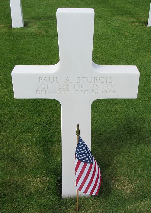 Sgt Paul A. Sturgis was employed at Continental Diamond Fibre Company before he enlisted in Camden, New Jersey on 17 January 1944. He was sent overseas in September 1944.He was killed by artillery shell fragments to his buttock and hip.