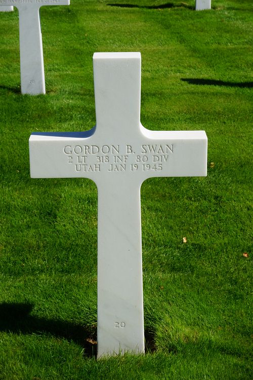 2nd Lt Gordon B. Swan attended Ogden High School and graduated from Weber College and the School of Forestery at the USAC.He enlisted on 16 February 1942 and received his commissioning at Camp Davis in 1943.