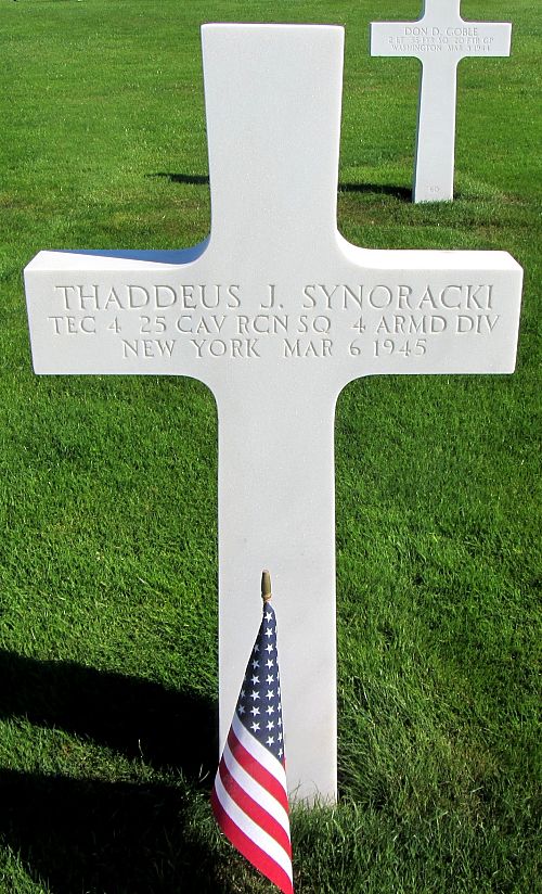 T/4 Thaddeus J. Synoracki enlisted in Buffalo, New York on 14 May 1941.Source of information: André Koch, www.abmc.gov, www.wwiimemorial.com, www.archives.gov – WWII Enlistment Record, www.ancestry.com - 1920 Census / Headstone and Interment Record, www.newspapers.com - The Courier Journal - 1 April 1945