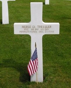 Pfc Merle D. Tressler graduated from Meyersdale High School in 1932 and was an inspector before he enlisted at Fort George G. Meade, Maryland on 16 March 1944.He was killed by artillery shell fragments in the thorax.