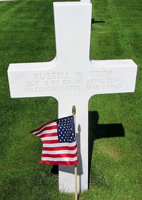 Sgt Russell W. Tripp attended high school for four years and was a pharmacist at the Liggett Drug Company before he enlisted in Boston, Massachusetts on 26 May 1941.He was killed when the vehicle he was in was destroyed by a land mine.