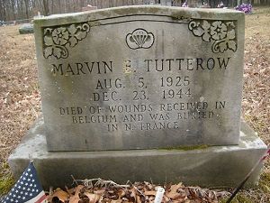 Pvt Marvin E. Tutterow enlisted in Indianapolis, Indiana on 1 November 1943.He is remembered at the Oak Ridge Cemetery in Helmsburg, Brown County, Indiana.