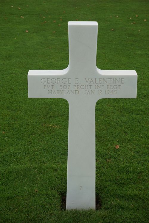 Pvt George E. Valentine enlisted in Baltimore, Maryland on 10 August 1943.He was first buried at the Temporary American Military Cemetery in Grand-Failly, France.
