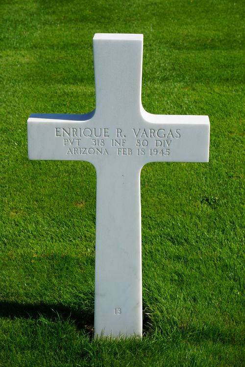 Pvt Enrique R. Vargas was employed by Pauls Spur before he enlisted in Phoenix, Arizona on 18 January 1944.He was killed by artillery shell fragments in his abdomen and the side of his body.