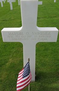 Pvt Manuel O. Vasquez was a driver before he enlisted in Denver, Colorado on 6 April 1943.He was first buried at the Temporary American Military Cemetery of Grand Failly, France.