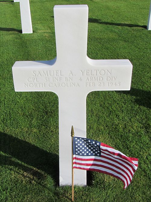 Cpl Samuel A. Yelton enlisted at Camp Croft, South Carolina on 1 July 1943. He was sent overseas in November 1944.Source of information: André Koch, www.abmc.gov, www.wwiimemorial.com, www.archives.gov – WWII Enlistment Record, www.ancestry.com - 1910/1920/1940 Census / Headstone and Interment Records / U.S. WWII Draft Cards Young Men, 1940-1947, AAR 51st AIB August 44 thru May 1945