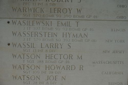 Wassil’s name is recorded on the Walls of the Missing at Netherlands American Cemetery, an American Battle Monuments Commission site in Margraten, Netherlands, along with the others still missing from World War II. A rosette will be placed next to his name to indicate he has been accounted for.