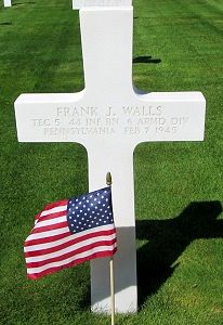 T/5 Frank J. Walls attended high school for four years before he enlisted at Fort George G. Meade, Maryland on 25 November 1941.Source of information: Peter Schouteten, www.abmc.gov, www.wwiimemorial.com, www.archives.gov – WWII Enlistment Record, www.ancestry.com - Headstone and Interment Record / Pennsylvania Veteran Compensation Application Files WWII / 1930/1940 Census / U.S. WWII Draft Cards Young Men, www.findagrave.com, www.super6th.org