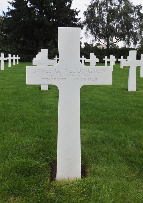 Pfc James G. Weddington attended 3 years of high school and worked on a farm.He enlisted at Camp Shelby, Mississippi on 21 March 1944.