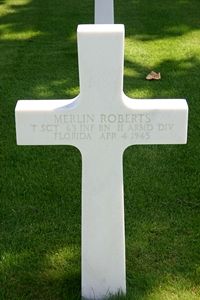 T/Sgt Merlin Roberts attended Bastrop High School in Louisiana and was employed in defense work in Jacksonville, Florida.He moved out on a mission of clearing the route from Suhl eastwards to Elgersburg. Small arms and automatic weapons fire coming from dug-in infantry postions was encoutered southeast of Luter.