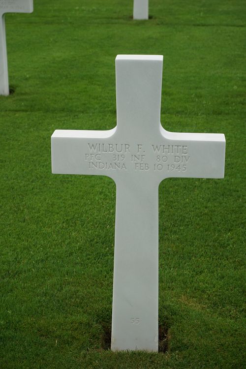 Pfc Wilbur F. White was a mechanic employed by L.O. Gatfs Chev Corp. before he enlisted at Fort Benjamin Harrison, Indiana on 15 June 1944.He was killed by artillery shell fragments in his head.
