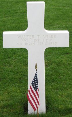 Pfc Walter T. Wilke attended 3 years of high school and was a sales clerk before he enlisted.Source of information: Leo Minne, www.abmc.gov, www.wwiimemorial.com, www.archives.gov - WWII Enlistment Record, www.ancestry.com - Headstone and Interment Record / 1920/1930/1940 Census / Philippeau Fam Tree, A footsoldier for Patton / Michael C. Bilder James G. Bilder, The 5th Infantry Division in the ETO