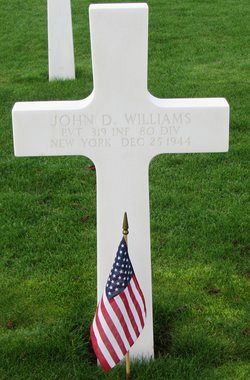 Pvt John D. Williams was employed by the Fraft Cheese Co. before he enlisted at Fort Dix, New Jersey on 21 April 1944.His foxhole (with 2 other men) took a direct hit from a German artillery round.
