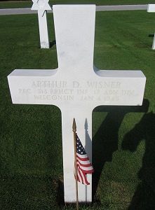 Pfc Arthur D. Wisner was first buried at Temporary American Military Cemetery Grand Failly, France.Source of information: Peter Schouteten, www.abmc.gov, www.wwiimemorial.com, www.ancestry.com - Headstone and Interment Record / Richey Family Tree / 1940 Census, http://www.ww2-airborne.us