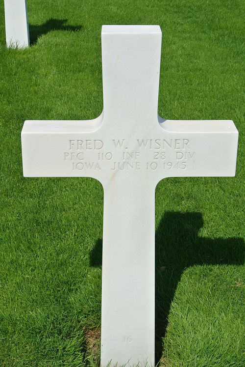 Pfc Fred W. Wisner worked on a farm before he enlisted at Fort Snelling, Minnesota on 18 July 1944.Source of information: Peter Schouteten, www.abmc.gov, www.wwiimemorial.com, www.archives.gov – WWII Enlistment Record, www.ancestry.com - Headstone and Interment Record / 1930/1940 Census / State Census Collection / U.S. WWII Draft Cards Young Men / Podo Family Tree, www.findagrave.com – Doc Wilson, www.newspapers.com – The Courier - 23 July 1944
