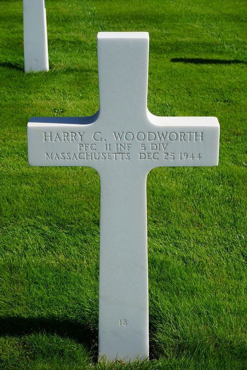 Pfc Harry G. Woodworth Jr. enlisted in Boston, Massachusetts, on 1 April 1943. He attended 4 years of high school and worked in a factory before he enlisted.Source of information: Leo Minne, www.abmc.gov, www.wwiimemorial.com, www.archives.gov – WWII Enlistment Records, www.ancestry.com - U.S. Headstone and Interment Record, www.findagrave.com