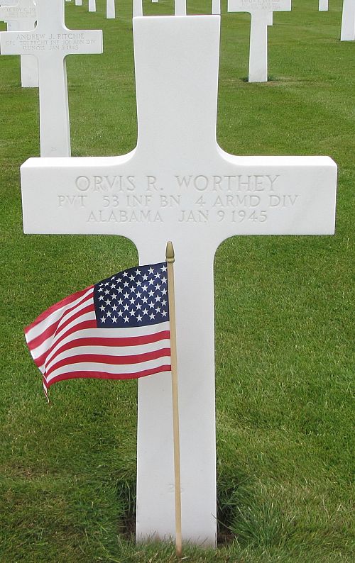 Pvt Orvis R. Worthey enlisted at Fort McClellan, Alabama on 22 March 1944.He was first buried at the Temporary American Military Cemetery of Grand Failly, France.