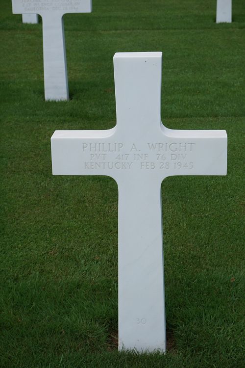 Pvt Phillip A. Wright enlisted in Louisville, Kentucky on 7 December 1943.Source of information: André Koch, www.abmc.gov, www.wwiimemorial.com, www.archives.gov – WWII Enlistment Record, www.ancestry.com - 1930/1940 Census / Headstone and Interment Records / U.S. WWII Draft Cards Young Men 1940-1947