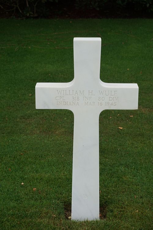 Cpl William H. Wulf graduated from New Palestine High School in 1937 and worked on the family farm.He enlisted in Indianapolis, Indiana on 6 July 1942 and was sent overseas on 27 June 1944.