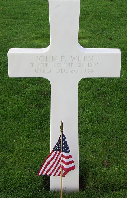 T/Sgt John F. Wurm attended high school for four years before he enlisted in Toledo, Ohio on 15 October 1941 and was sent overseas on 3 July 1944.Source of information: Peter Schouteten, www.abmc.gov, www.wwiimemorial.com, www.archives.gov – WWII Enlistment Record, www.ancestry.com - Headstone and Interment Record, www.findagrave.com – Ken Striker