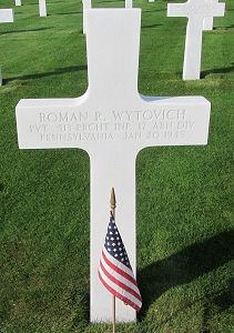 Pvt Roman R. Wytovich enlisted in Wilkes Barre, Pennsylvania on 21 January 1941. He was sent overseas in September 1944.Pvt Wytovich never saw his son who was only three months old when he was killed.