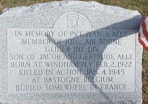 Pvt Alle is remembered at the Windham Cemetery in Windham, Greene County, New York.