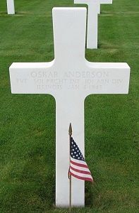 Pvt Oskar Anderson was first buried at Temporary American Military Cemetery Grand Failly, France.Source of information: Peter Schouteten, Terry Hirsch, www.abmc.gov, www.wwiimemorial.com, www.ancestry.com - Headstone and Interment Records, http://www.ww2-airborne.us, WWII Draft Card