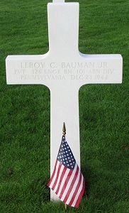 Pvt Leroy C. Bauman Jr. worked in a machine shop before he enlisted in Pittsburgh, Pennsylvania on 20 February 1943.Source of information: Peter Schouteten, www.abmc.gov, www.wwiimemorial.com, www.archives.gov - WWII Enlistment Record, www.ancestry.com - Headstone and Interment Record / 1930 Census / Pennsylvania Veteran Compensation Application Files WWII, http://www.ww2airborne.us