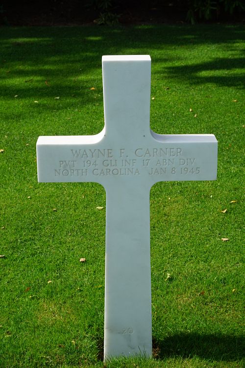Pvt Carner was first buried at Temporary American Military Cemetery Grand Failly, France.