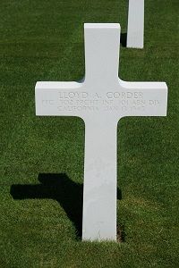 Pfc Lloyd A. Corder worked in an automobile factory before he enlisted in Sacramento, California on 6 November 1942.Source of information: Peter Schouteten, Kathy McDermott, www.abmc.gov, www.wwiimemorial.com, www.archives.gov - WWII Enlistment Record, www.ancestry.com - Headstone and Interment Record / Phingleton Family Tree, http://www.ww2-airborne.us