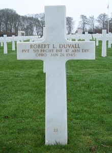 Pvt Robert L. Duvall enlisted in Cleveland, Ohio on 26 July 1943.He was a clerks general office before he enlisted.