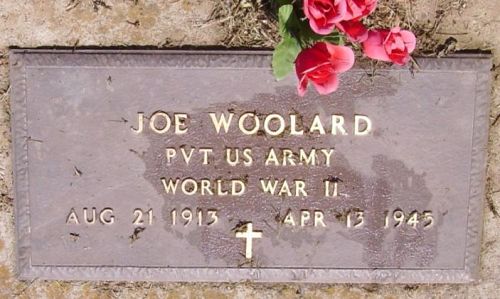 Pfc Joe Woolard is remembered at the Masonic and Odd Fellows Cemetery in Benton, Franklin County, Illinois.Source of information: Peter Schouteten, Laura Phillips, Terry Hirsch, www.wwiimemorial.com, www.archives.gov, www.5ad.org, www.ancestry.com - The Daily Register 3 May 1945-5 June 1945 / 1920/1940 Census / New Schu Family Tree / Headstone and Interment Record