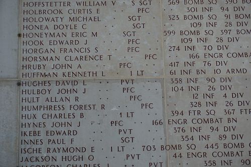 Pvt David L. Hughes' remains have been recovered, identified and interred at the Ardennes American Cemetery. His name is permanently inscribed on the Tablets of the Missing at the Luxembourg American Cemetery and Memorial.