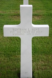 Pvt. Bertram L. Bent graduated from Hot Springs High School in 1938.Source of information: Terry Hirsch, wwiimemorial, www.archives.gov, www.ancestry.com - Headstone and Interment Record / 1930 census, http://www.ww2-airborne.us/