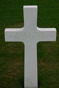 The group dropped supplies to British ground troops on a low-level mission. Flying at 300 to 700 feet, the planes were met by small arms and light artillery fire and 3 were shot down. "Queen of Angels" (42-50735) went down, killing 8 crewmen with 1 more returning safely (Alan W. Keenen). #42-50735 was seen in target area with #3 engine on fire. 2 Crew members seen to bail out, only one chute opened. Aircraft burst into flames as it crashed in target area at 1326 hours at 300 feet.In 1946, the American Legion Creek-Ferguson-Cheek Post #19 was named in his honor.