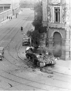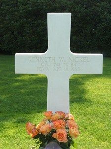 Cpl Kenneth W. Nickel enlisted at Camp Dodge Herrold, Iowa on 5 January 1943.On 18 April an attack on the Western section of Leipzig was planned with one platoon. After advancing 10 blocks, one platoon was divide into two sections, in order that two streets could be covered in the movement furter into the city. No opposition of significance was encountered until tanks approached a bridge across a canal. at this point a large amount of small arms and panzerfaust fire was met. Here one tank was hit by panzerfaust fire and destroyed with the loss of the entire crew.